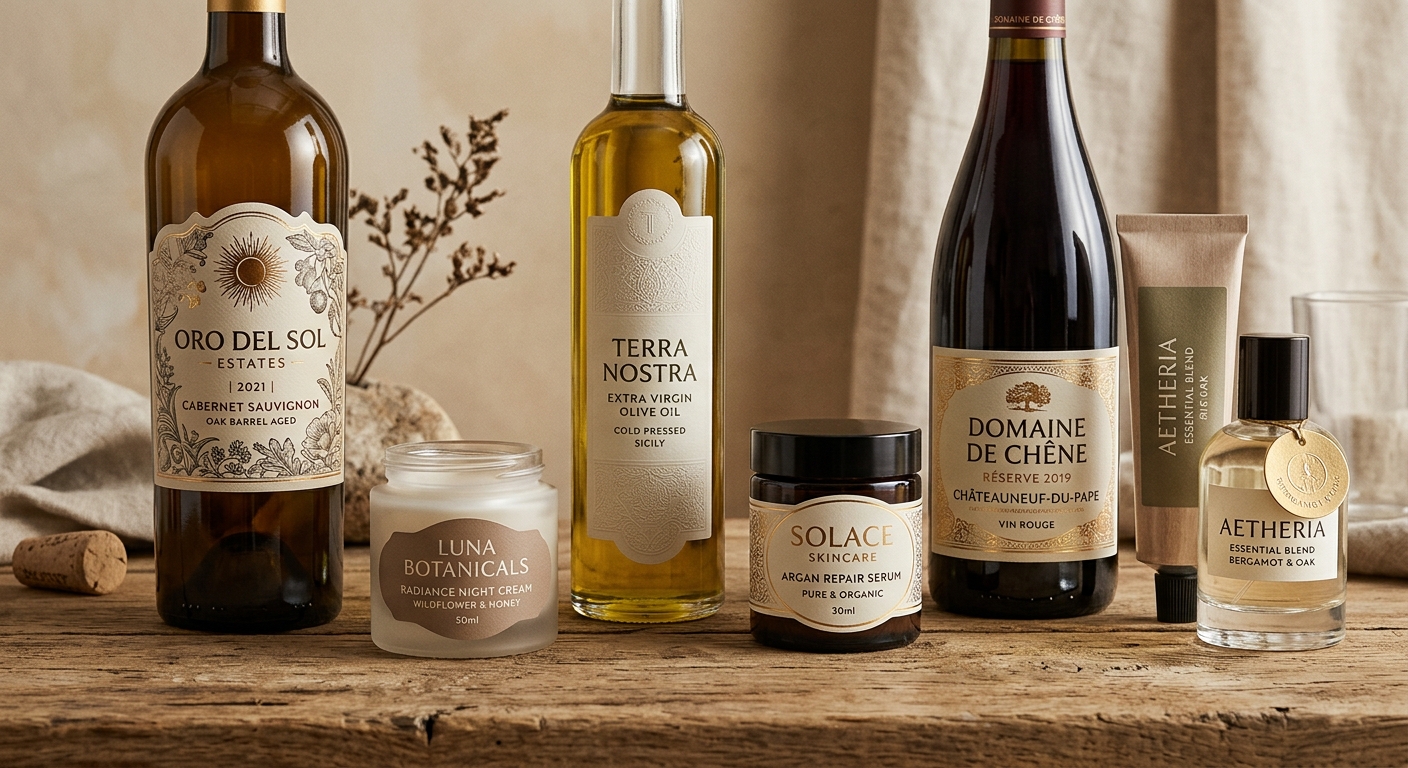 Custom labels designed for shelf impact—foil stamping, embossing, and specialty substrates that communicate your brand essence at first glance.